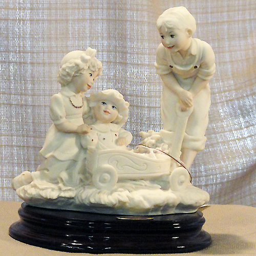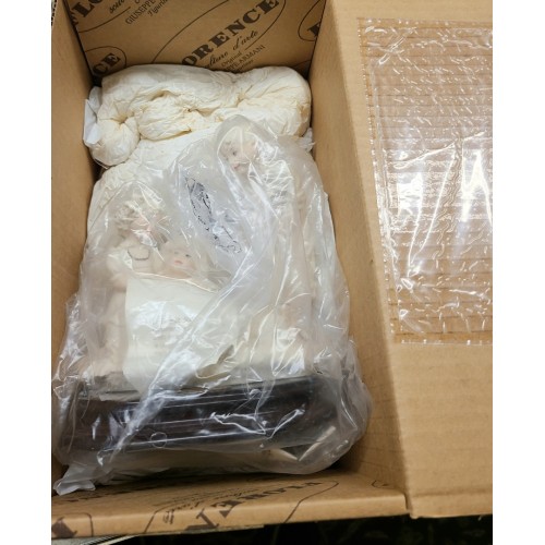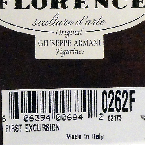 NEW NEVER SOLD Guisippe Armani figurine First Excursion. It stands 6.5 inches tall and is hand painted in Florence Italy. It is porcelain and stands on a wooden base.The registration number is 0262F.
