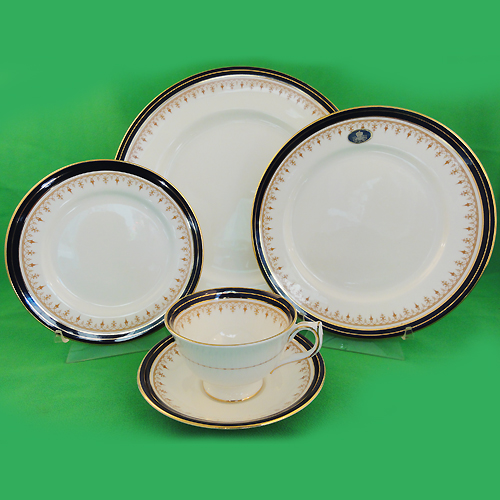 NEW NEVER USED Aynsley dinnerware Leighton, Soup Cereal 6.5" diameter, bone china hand painted in England, 24kt gold band, Cobalt Blue