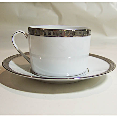 BRAND NEW NEVER USED This is the Bernardaud Limoges Athena pattern 5pc place setting dinnerware. It has a platinum and It is made in Limoges France and has a square pattern in the band. It has a dinner,salad,bread and butter and cup and saucer