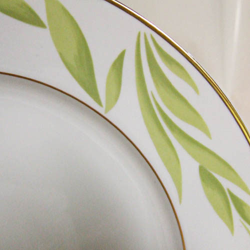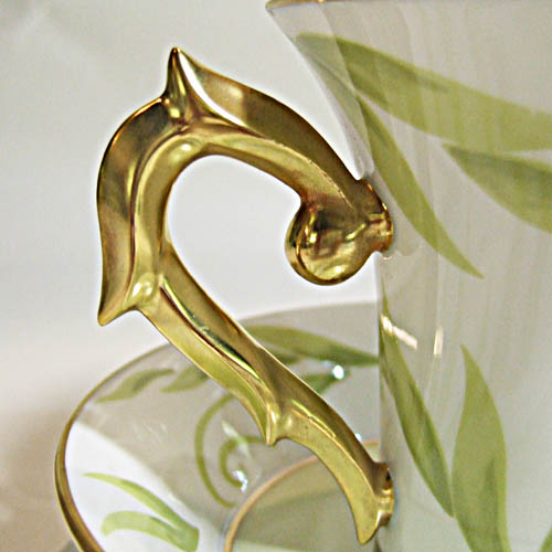 NEW NEVER USED Bernardaud Limoges dinnerware Frivole Expresso Cup & Saucer, made in France, hand painted porcelain, green floral pattern