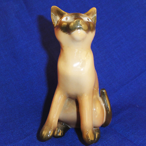 NEW NEVER SOLD Bing & Grondahl Siamese Cat with front paws slightly up, hand painted and stands 5.5" tall, 4" long, 2.75" wide, Porcelain, made in Denmark, Model #2308HR.