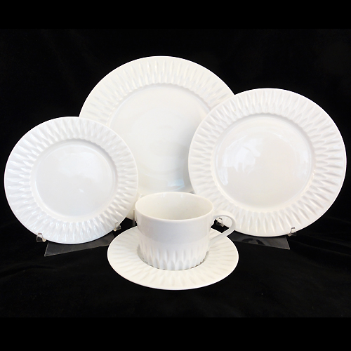 NEW NEVER USED Block Spal dinnerware Azores, 45 piece dinner set including 8-Dinner 10.5", 8-Salad 8", 8-Bread & Butter 6.25", 8-Cup 2.5" tall, 3.5" at the lip & Saucer 6", 1-Creamern4.5" tall, 4" X 3" wide, 1-Covered Sugar,1-Platter,1-Open Vegetable, porcelain made in Portugal