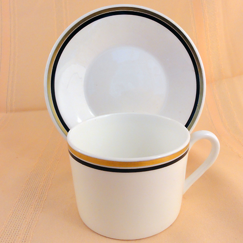 NEW NEVER USED Coalport dinnerware, Zenith, 5 Piece Place Setting, Dinner 11", Salad 8.2, Bread & Butter 6.25", Cup 2.25" tall and 3.25" diameter, Saucer 5.6", bone china hand painted in England, gold and brown trim.