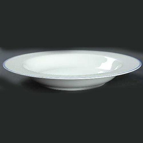 NEW NEVER USED Dansk dinnerware Tapesteries Damask Blue Designed by Jack Lenor Larsen, Rim Soup 9" diameter, hand painted porcelain stoneware made in Japan