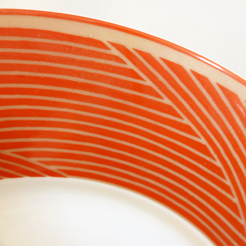 NEW NEVER USED Dansk dinnerware Tapesteries Jacquard Red Designed by Jack Lenor Larsen, Rim Soup 9" diameter, hand painted porcelain stoneware made in Japan