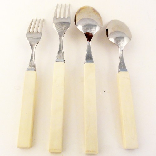 NEW NEVER USED Denby Flatware Energy Ivory Stoneware Handled Stainless tines 18/10 best quality Dinner Fork 8.6", Salad Fork, 7.5", Soup Spoon 8.5", Tea Spoon 7.5" hand formed, oven, dishwasher and freezer proof, made in Thailand