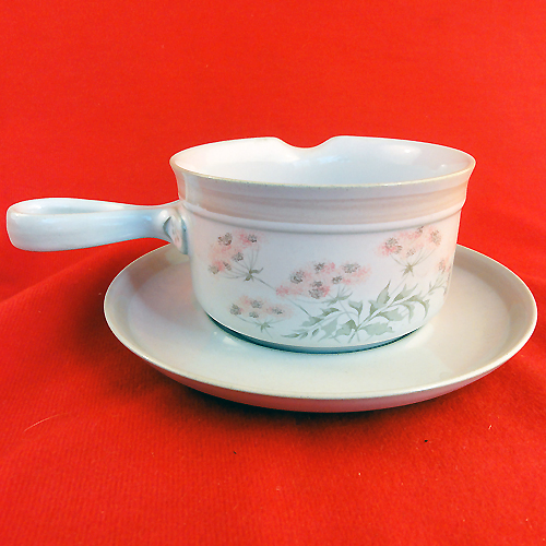NEW NEVER USED Denby dinnerware Brittany Gravy Boat 7" long, 4.75" wide, 2.5" tall, Stoneware hand formed, painted, oven, dishwasher and freezer proof, made in England