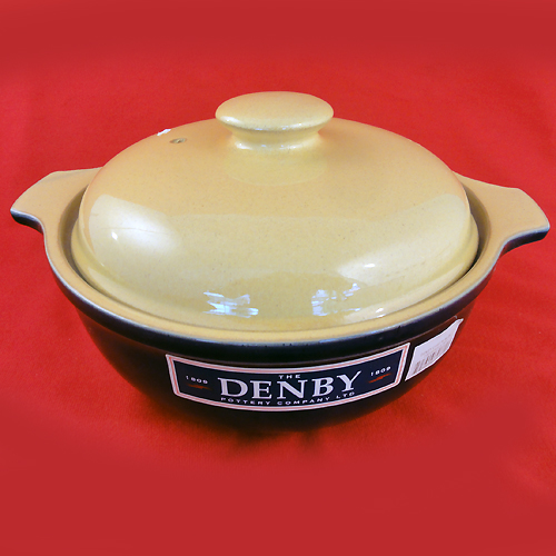 NEW NEVER USED Denby dinnerware Chef's Blue Covered Round Casserole 10.5" diameter, 6" tall, 9" at the rim, Stoneware hand formed, hand painted, oven, dishwasher and freezer proof, made in England