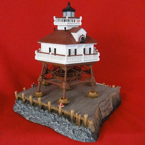 Harbour Lights lighthouse figurine Drum Point Maryland USA #440 was designed in 2002. It is 6 inches high, 5.25 inches long and 5 inches wide. It is porcelain hand painted