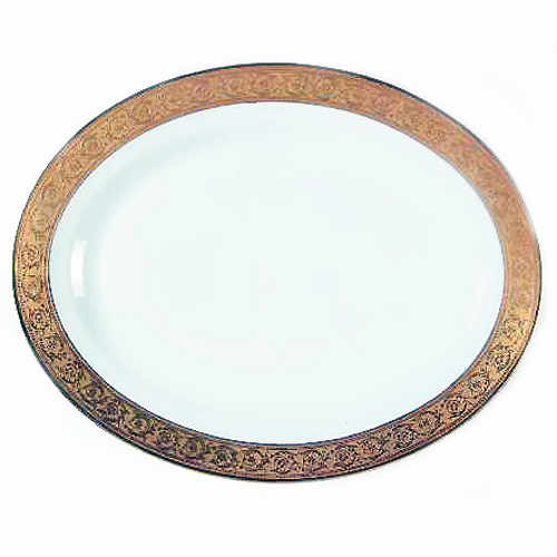 New Never Used Haviland Limoges dinnerware Thistle Platter 14 inches long, 10.25 wide,, porcelain, made in France, decorated with 22kt gold band
