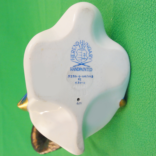 NEW NEVER SOLD Herend figurine Koi Carp, Blue and 24kt Gold version, porcelain hand decorated, stands 6" tall, 5.5" long and 3" wide, made in Hungary