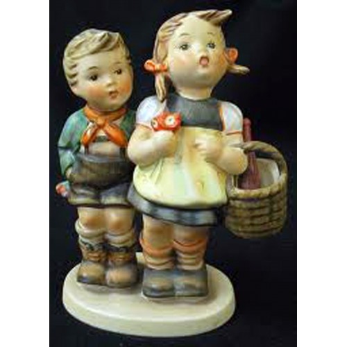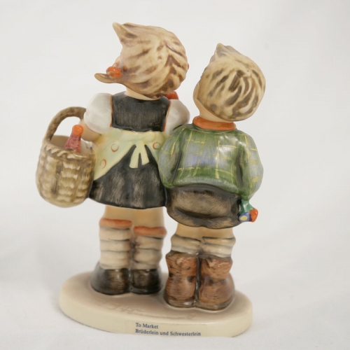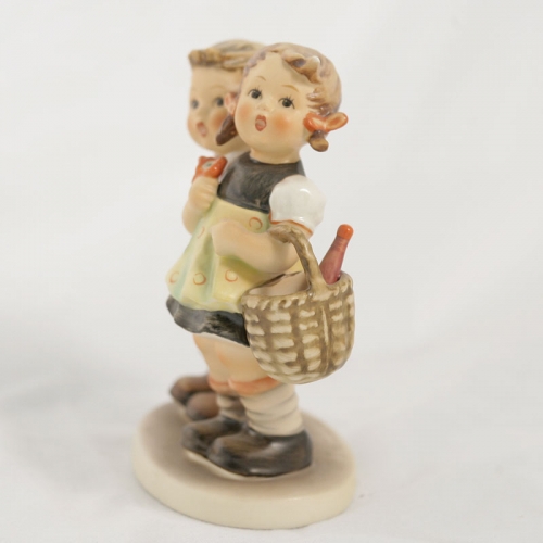 NEW NEVER SOLD Hummel Figurine To Market HUM 49/0 is hand hand painted pottery made in Germany, produced in 1972 it is 5.25 inches tall, 4.5 inches wide and 2.5 inches deep