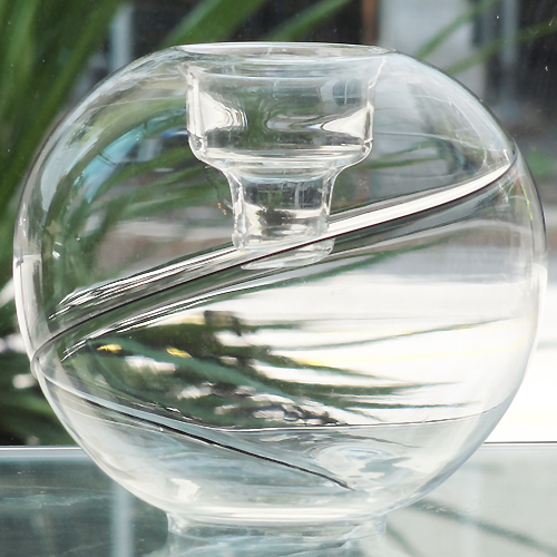 NEW NEVER USED!! Kosta Boda Line Black. This is the round vase or candle holder. This piece stands 4.8" tall, is 4.75" in diameter. This glass is hand blown and made in Sweden and designed by Anna Ehrner.