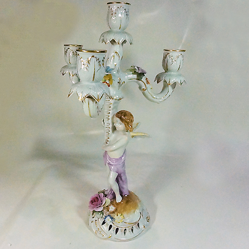 VINTAGE CIRCA PRE WWII Dresden porcelain Candleholder, 4 arm 15.5 inches high,9.5 inches long, Original hand painted made in Pre WWII  Germany