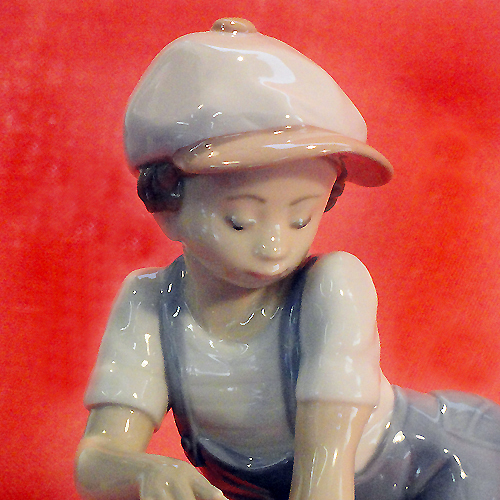 NEW IN BOX Lladro figurine All Aboard 07619 is a porcelain one hand painted in Spain. There is a boy playing with his train set. It is 5 inches long and comes in its original box