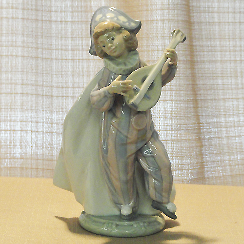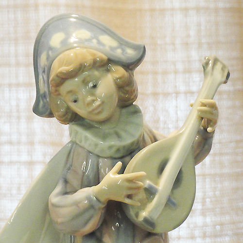 Lladro figurine Mandoline Serenade 05696 is porcelain hand painted  in Spain. He is 7 inches tall and is playing a mandoline