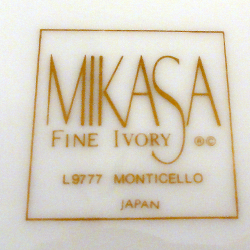 NEW NEVER USED Mikasa dinnerware Monticello Gravy Boat 3" tall, 6.25" long, 3.2" wide with separate Stand 8.25" long, 6" wide, Fine Ivory Porcelain, 24kt Gold Band, made in Japan