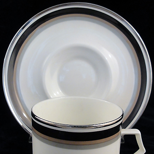 NEW NEVER USED Mikasa dinnerwae Noir Saucer 6.25" diameter, Bone China designed by Narumi, made in Japan, model A4102, silver and gold