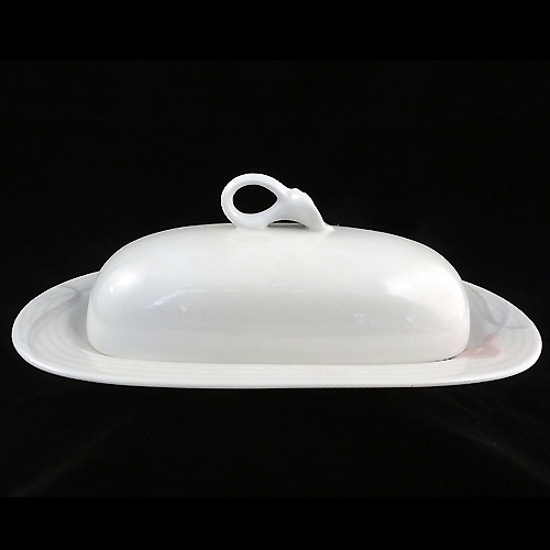NEW NEVER USED Mikasa dinnerware Serenade Pink Covered Butter Dish 3.5" tall, 8.75" long, 4.5" wide, Fine China made in Japan, designed by Helena Uglow