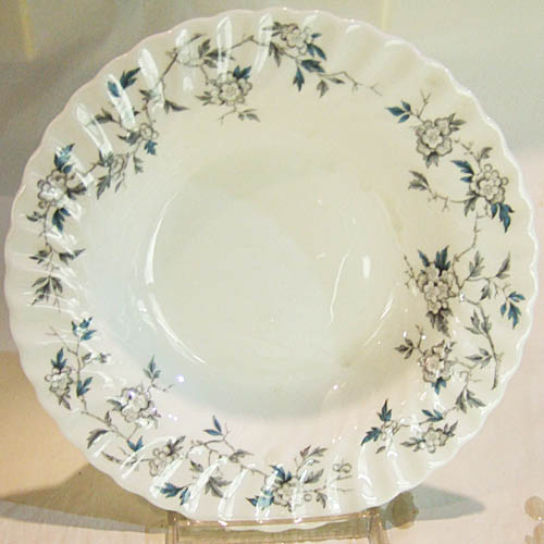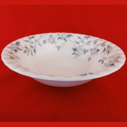 New Never Used Minton dinnerware Arden Fruit Saucer , 1 inch high, 5.2 inches in diameter,bone china made in England, blue floral motif, heavy dinnerware and has no gold or platinum and therefore can be used in the microwave