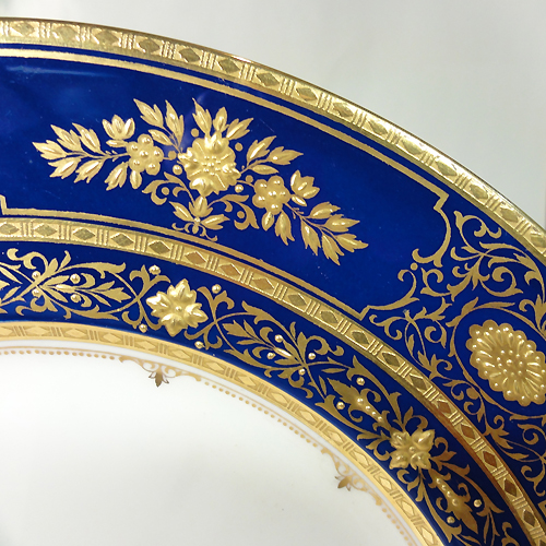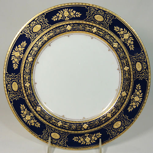 NEW NEVER USED Minton dinnerware Argyle Cobalt Dinner Plate 10.75" diameter, bone china hand painted 24kt gold, cobalt blue made in England