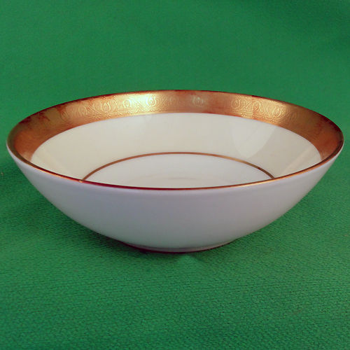 NEW NEVER USED Minton dinnerware Buckingham Fruit Saucer is 1.5 inches tall and 5.25 inches in diameter, bone china hand decorated with thickly applied 24kt gold edge, creme and white, England