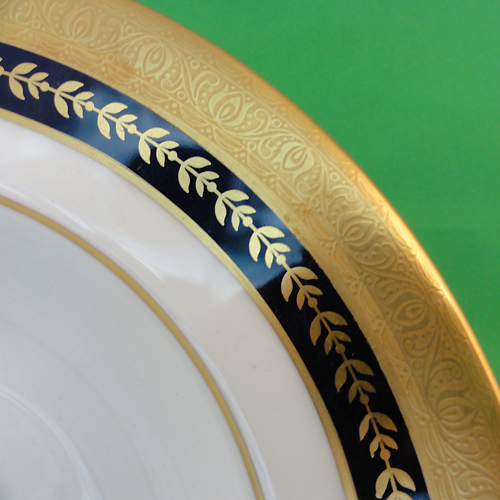 NEW NEVER USED Minton dinnerware Imperial Gold Cobalt Platter 13.5 inches in length and 10.5 inches wide, bone china hand decorated in England
