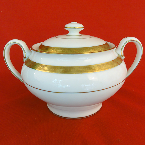 NEW NEVER USED Minton dinnerware Winchester Covered Sugar 6.5 inches in length and 5 inches wide, 4.5 inches high, bone china hand decorated in England