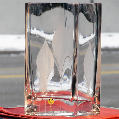 NEW NEVER USED NEW IN BOX Peill Xenos Mit Blatt Vase 9.25" tall, 6.3" X 3.75" at the rim, Mouth Blown, Hand cut lead crystal, manufacturer based in Germany, in business 1903-2004