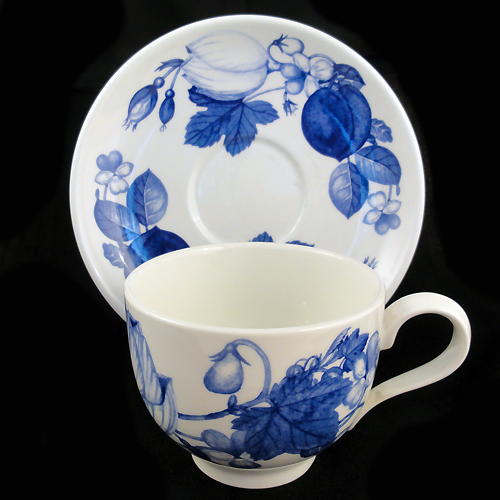 NEW NEVER USED Portmeirion dinnerware Harvest Blue 5pc Place Setting with Bowl, Dinner Plate 10.5" diameter, Salad Plate 8.5" diameter, Cereal Bowl 1.8" tall, 6.5" wide, 6.5" at the rim, Oven Ware, Microwaveable, in production from 1996-1999, made in England