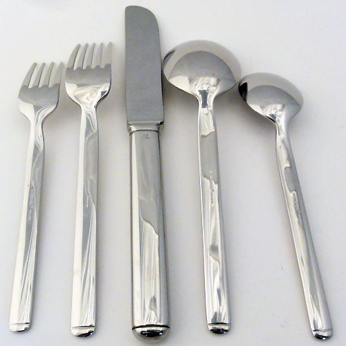 NEW NEVER USED Retroneu stainless flatware, Cinquo, 5 Piece Place Setting, Stainless, Dinner Knife 8.5", Dinner Fork 7.25", Salad Fork 6.5", Soup Spoon 7.25", Teaspoon 6", 18/8 Stainless Steel.