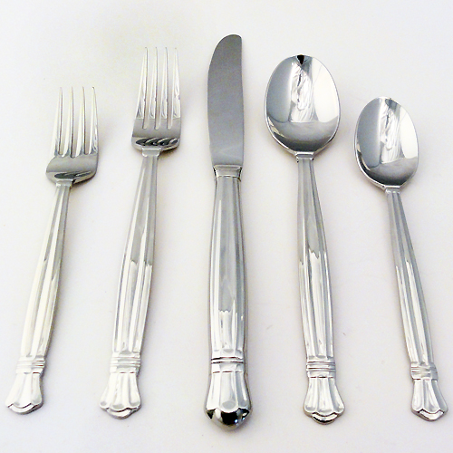 NEW NEVER USED Retroneu stainless flatware, Royale, 5 Piece Place Setting, Dinner Knife 9", Dinner Fork 7.5", Salad Fork 6.25", Soup Spoon 7.25", Teaspoon 6.25", 18/8 Stainless Steel.