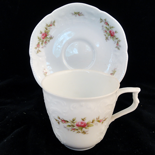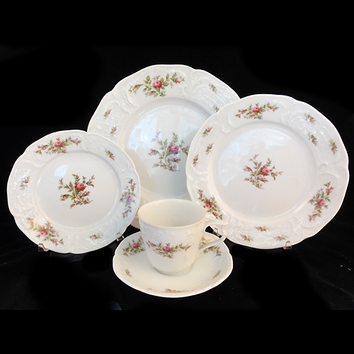 NEW NEVER USED Rosenthal dinnerware, Sanssouci Rose White, 5 piece place setting, Dinner 10", Salad 8", Bread & Butter 6.2", Saucer 5.5", Cup 2.75" tall and 3.2" diameter, Hand decorated porcelain, Classic Rose collection, Made in Germany.