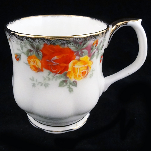 New Never Used Royal Albert dinnerware Pacific Rose, Coffee Mug, 3.5" tall, 4.25" wide, 3.25" at the lip, bone china, 24kt gold trim, Made in England
