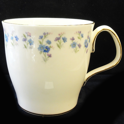 NEW NEVER USED Royal Albert Memory Lane bone china and made in England, MUG Tankard 3.25" tall, 24kt gold trim, Forget Me Not Flowers hence the name