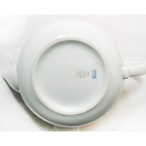 NEW NEVER USED Royal Copenhagen dinnerware Magnolia Light Blue Marbled Tea Pot 5.5 inches tall, 10 inches wide and 6.25" at the lip, hand painted porcelain made in Denmark, 24kt gold trim
