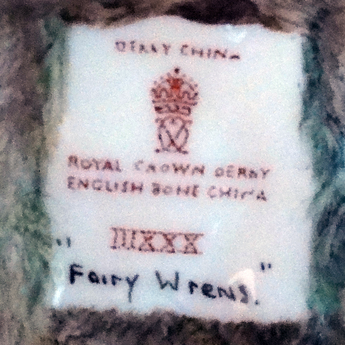 NEW NEVER SOLD Royal Crown Derby figurine Fairy Wren IIIXXX 6.5 inches tall, 4 inches long and 4 inches wide, hand painted bone china made in England