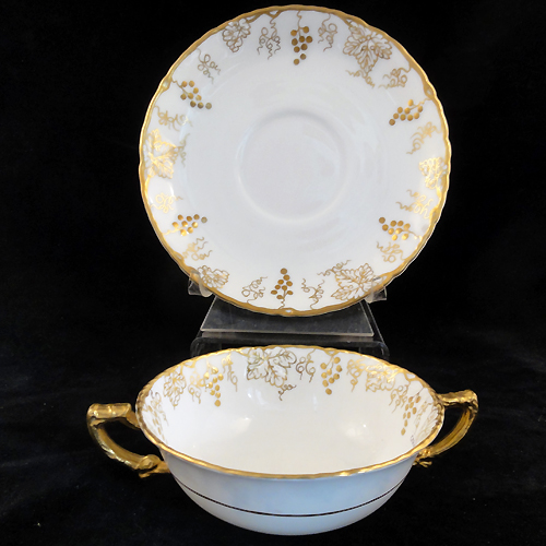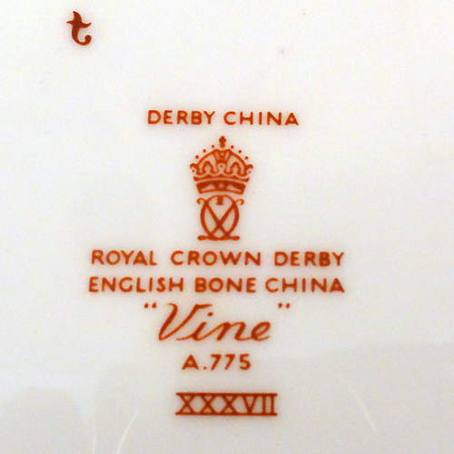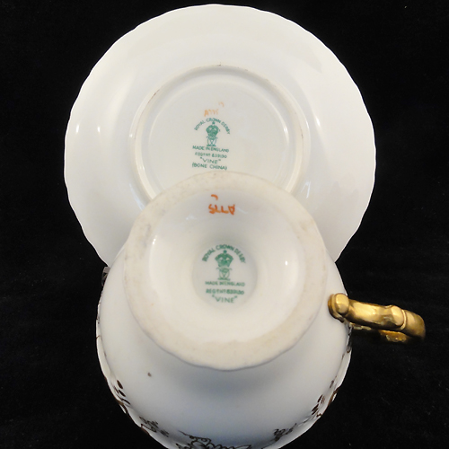 NEW NEVER USED Royal Crown Derby dinnerware Vine Cup 2.75" tall, 3.75" at the lip, Saucer 5.6" diameter, bone china hand painted, decorated with 24kt gold, made in England