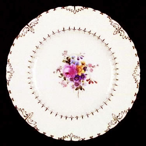 NEW NEVER USED Royal Crown Derby dinnerware Ashby Burford Shape 5pc Place Setting, dinner 10.5 inches in diameter, salad 8.25, bread and butter 6.25,cup 2.5 inches tall and 4.5 inches in diameter at the lip, saucer 5.5 in diameter, bone china hand painted in England