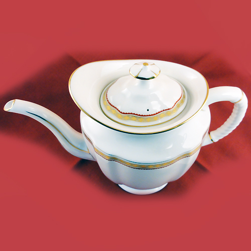 NEW NEVER USED Royal Crown Derby dinnerware Carlton Red Coffee Pot 9.25" tall, 8.75" wide, 4" at the lip, bone china hand decorated in England L