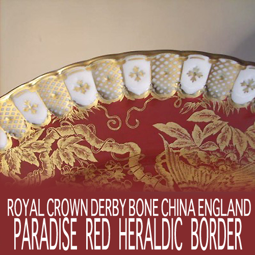 NEW NEVER USED Royal Crown Derby dinnerware Paradise Ruby, heraldic border, Saucer 5.5 inches in diameter, bone china, 22kt gold design,hand painted in England