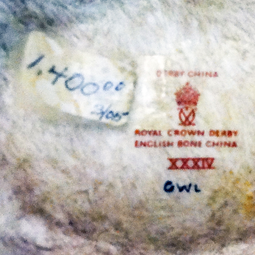 NEW NEVER SOLD Royal Crown Derby figurine Barn Owl XXXIV 5.75 inches tall, 5 inches long and 4 inches wide, hand painted bone china made in England