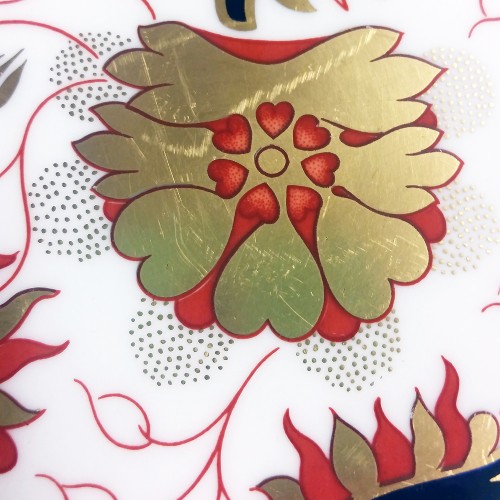 NEW NEVER USED soft scratches due to storage and display not use see image Royal Crown Derby Dinnerware Asian Rose Under Plate for Soup Tureen or Cake Plate 10" X 9.4" hand painted Bone China gilded with 24kt gold, made in England, Cobalt Blue with Iron Red