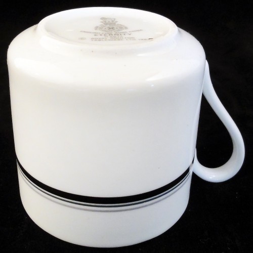 NEW NEVER USED Royal Doulton dinnerware Eternity Platinum. Bone China Demi Tasse, After Dinner, Cup 2.6" tall, 2.75" at the lip, Black Grey & Platinum Banding Made in England