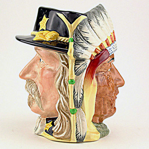 NEW NEVER SOLD Royal Doulton Character Jug Chief Sitting Bull & George Armstrong Custer D6712, designed by Michael Abberley in 1984, in production until 1965, one of the Antagonists' Series, a two-faced Jug, limited edition to 9,500 for the world, they are 7" tall, hand painted, made in England