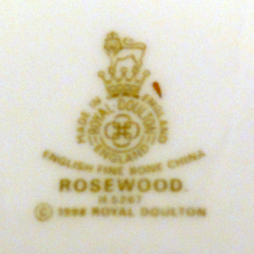 NEW NEVER USED Royal Doulton dinnerware Rosewood, 5 Piece Place Setting, Dinner Plate 10.5" diameter, Accent Salad 8" diameter, Bread & Butter 6.6" diameter, cup 2.75" tall, 3.6" at the lip, Saucer 5.75" diameter, decorated with gold trim, fine bone china hand painted in England