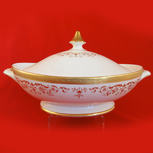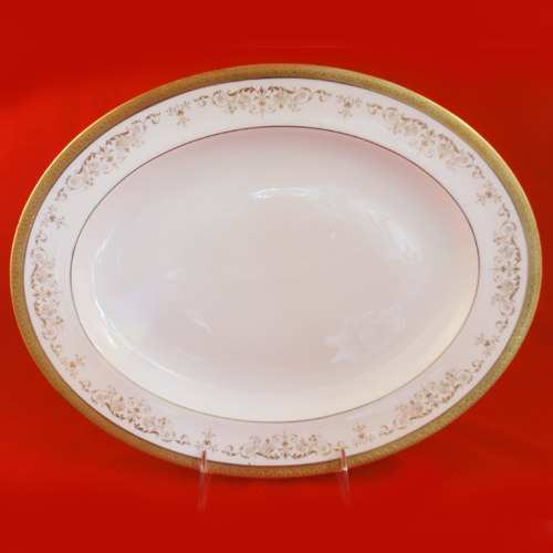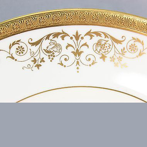 NEW NEVER USED Royal Doulton dinnerware Belmont Cream Soup 2.2" tall, 5.75" long, 4.75" wide, Stand 6" diameter, cream bone china hand decorated in England, 24kt gold trim