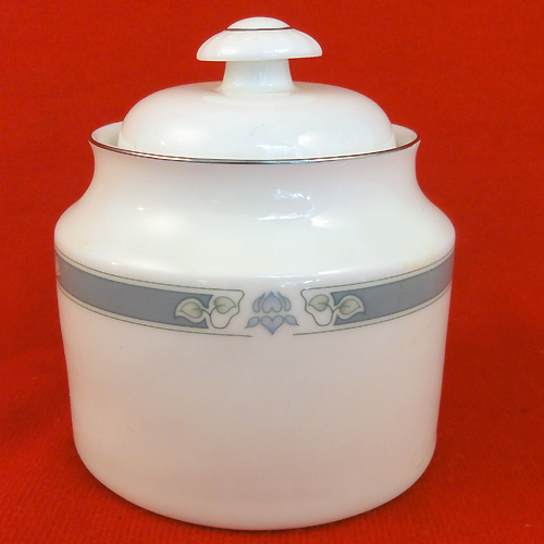 NEW NEVER USED Royal Doulton dinnerware Charade Covered Sugar 3.75" tall, 3.25" wide, bone china Platinum Band, made in England