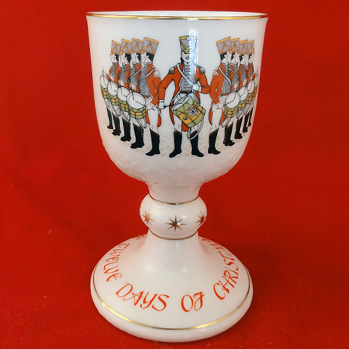 NEW NEVER USED Royal Doulton dinnerware giftware, 9th Day, Twelve Days of Christmas, Nine Drummers Drumming, bone china goblet, 6" tall and 3.5" at the lip, made in England