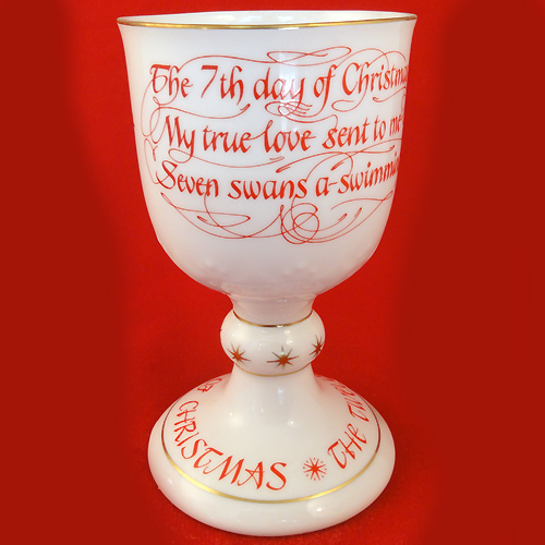 NEW NEVER USED Royal Doulton dinnerware giftware, 7th Day, Twelve Days of Christmas, Seven Swans a Swimming,bone china goblet, 6" tall and 3.5" at the lip, made in England